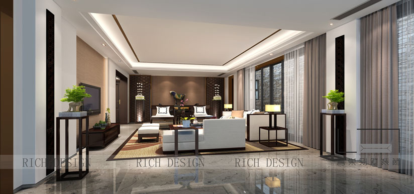 曦城別墅中式客廳裝修效果圖