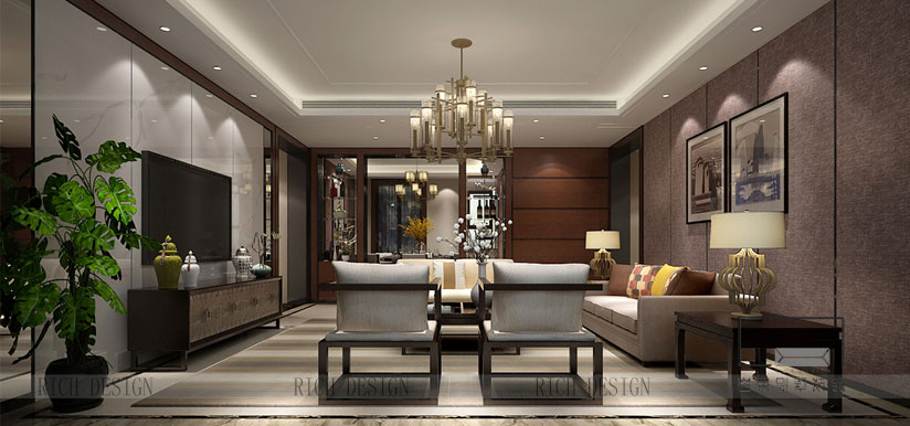 香蜜湖九號(hào)大院別墅裝修案例運(yùn)用中式風(fēng)格給人以典雅的感覺。空間以中性色為主,深淺適宜,層次飽滿,利用白色紗幔化解實(shí)木地板的深意,回字形地毯將色彩融為一體,極為柔和,新中式家具滿載著歷史與現(xiàn)代,與不同色彩塞陶瓷古董陳列其中持續(xù)著復(fù)古。