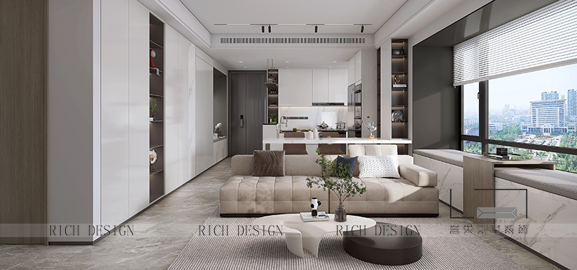 設(shè)計(jì)師將風(fēng)格定位于現(xiàn)代輕奢風(fēng),大量運(yùn)用充滿自然質(zhì)樸氣息的原木元素,勾勒出溫馨舒適的居室氛圍,局部采用高級(jí)灰家具協(xié)調(diào)空間色彩,巖板和大理石材質(zhì)協(xié)調(diào)空間質(zhì)感,打造一個(gè)理性與感性并存的居住空間。